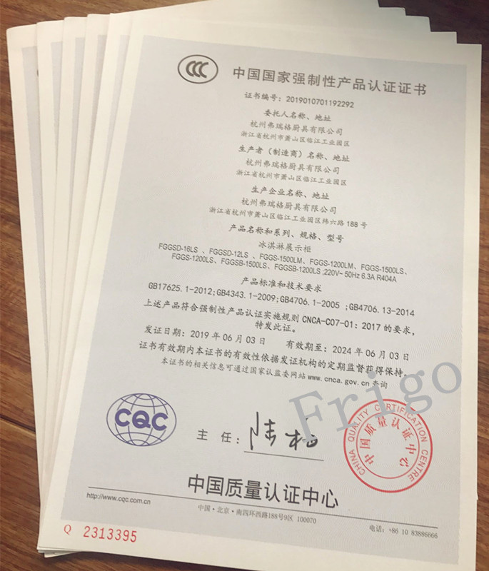 2019年06月03日,F(xiàn)rigo冰淇淋柜和冷凍柜 喜獲CCC認(rèn)證。